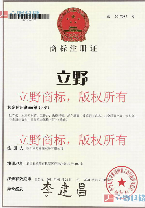 在此我們嚴正申明:立野®倉儲在浙江區域從未授權任何一家公司或個體商戶從事銷售立野倉儲的任何產品。任何跟我司名稱相近的企業或個體商戶跟我司沒有任何關系。請廣大客戶朋友購買產品時請認準立野®商標,以免上當受騙。我司法務部也在積極收集證據,維護立野®倉儲的專屬權利。